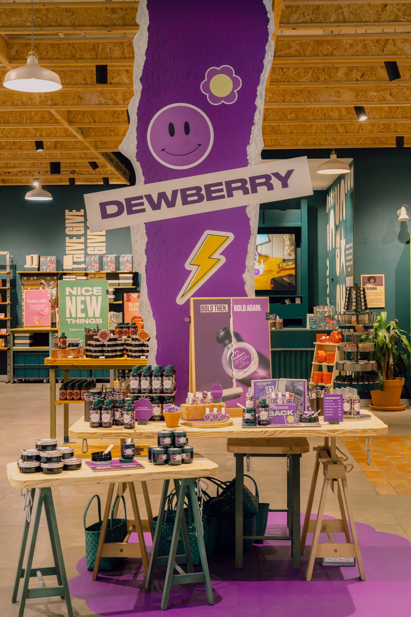 At the heart of the retail rollout, we made a 90s-inspired “museum” anchored by a physical time capsule at the Emporium flagship. Purple lockers filled with Tamagotchis, Tazos and Polaroids reframed Dewberry as both product and memory trigger. This immersive retail experience drove discovery, nostalgia and in-store engagement and added a focus to the POS design and global campaign concept.
